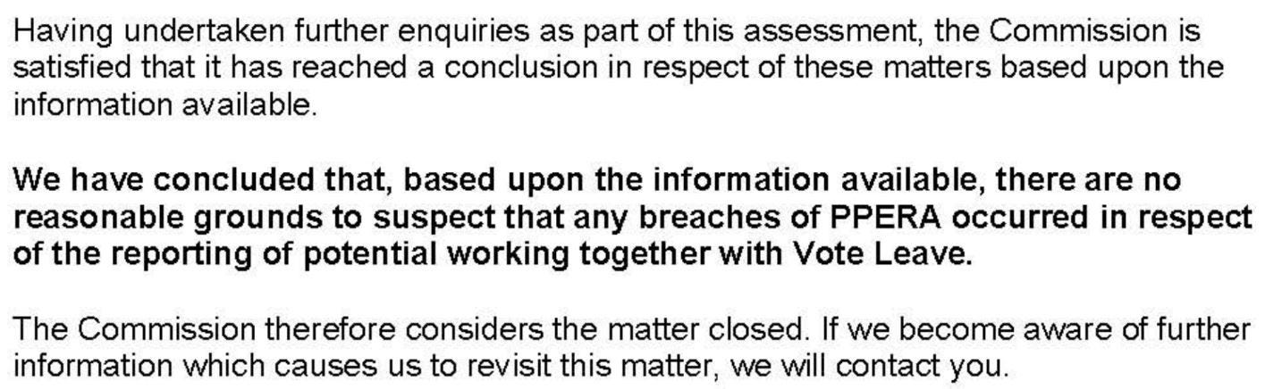 But it does not appear that the Electoral Commission followed up on this point.