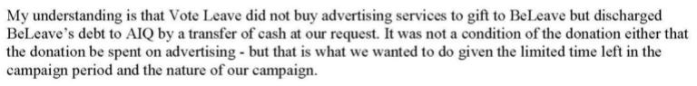 Vote Leave donated £625,000 to someone who thought its messaging was poor.
