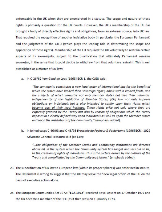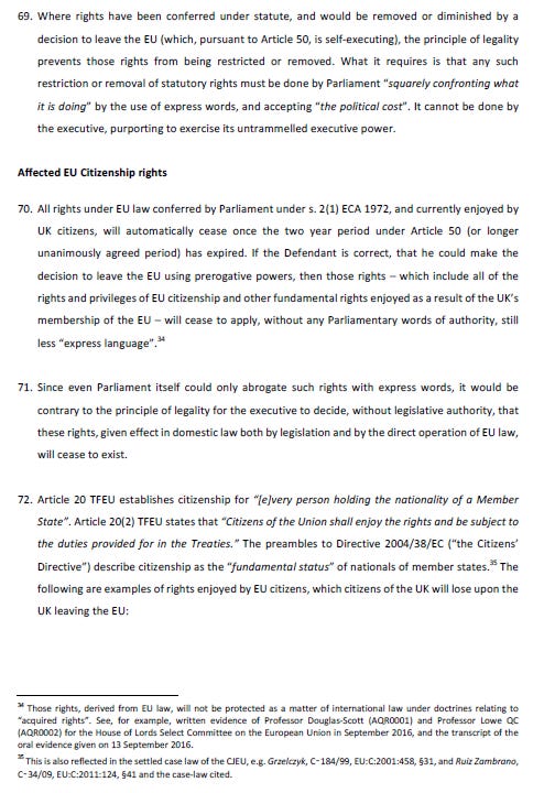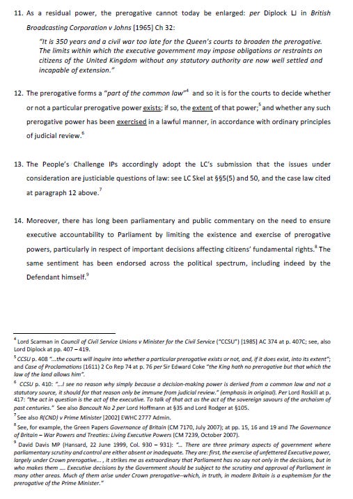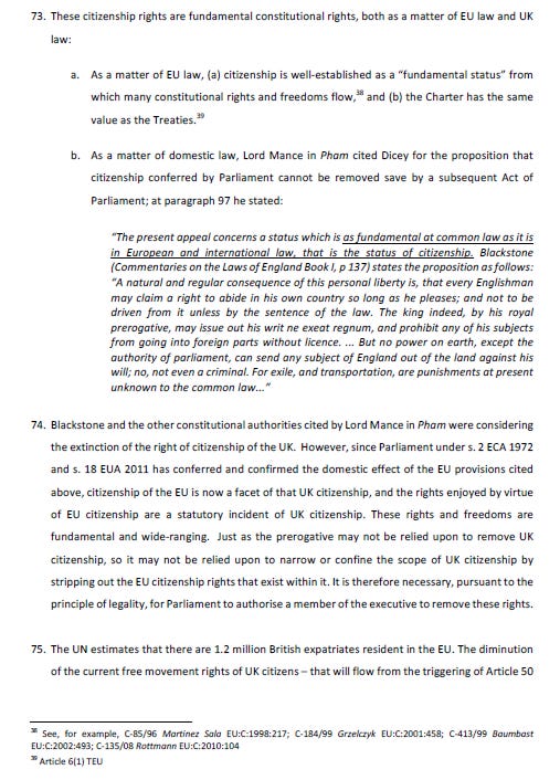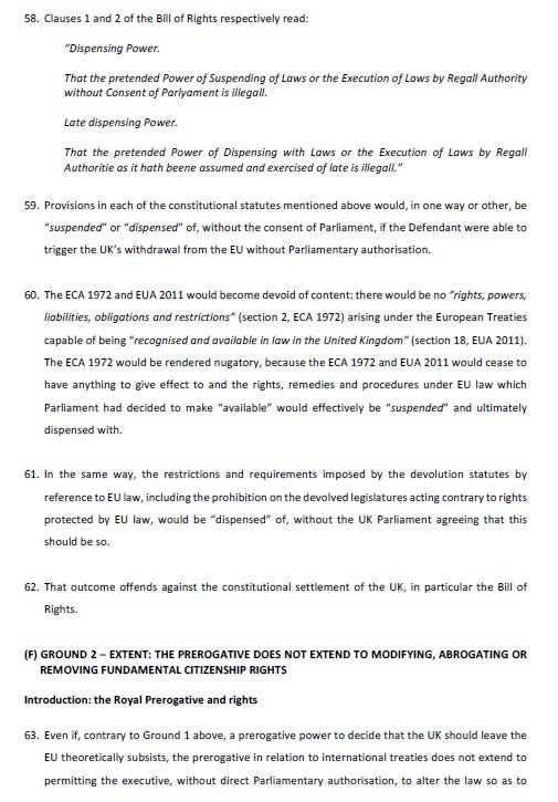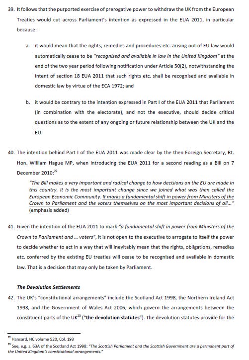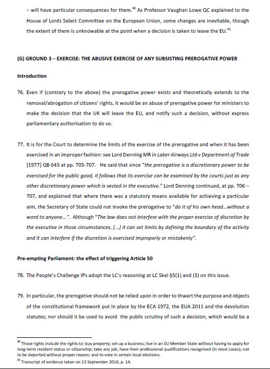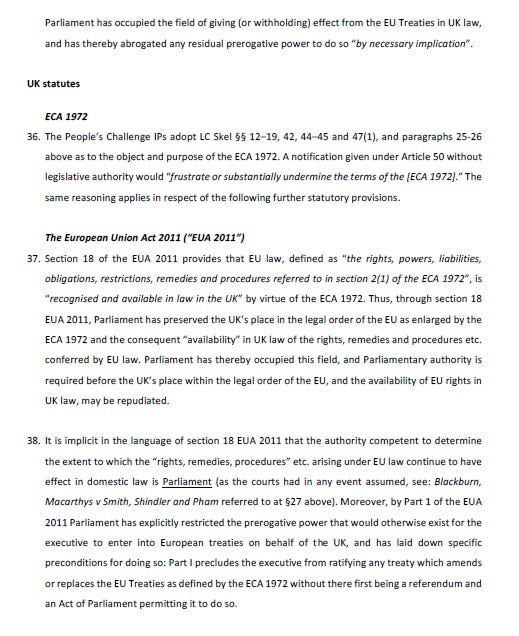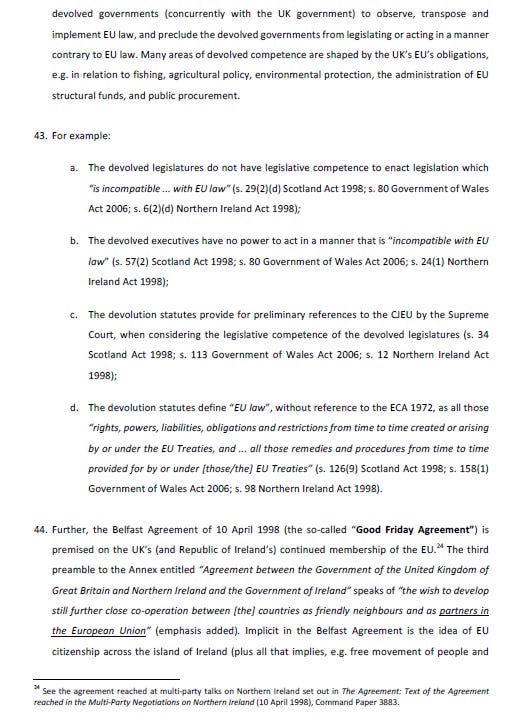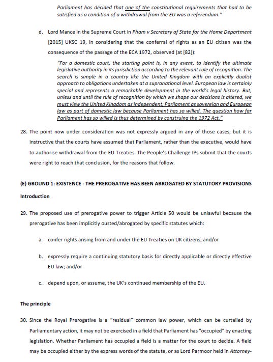 What follows is a copy of the Skeleton served by the 'Interested Parties' in the action before the High Court to establish whether an Act of Parliament is needed to trigger Article 50.
