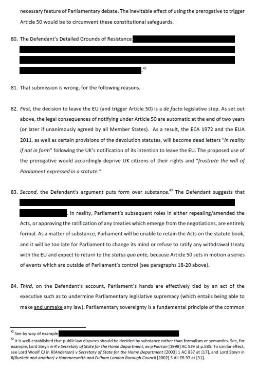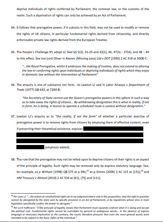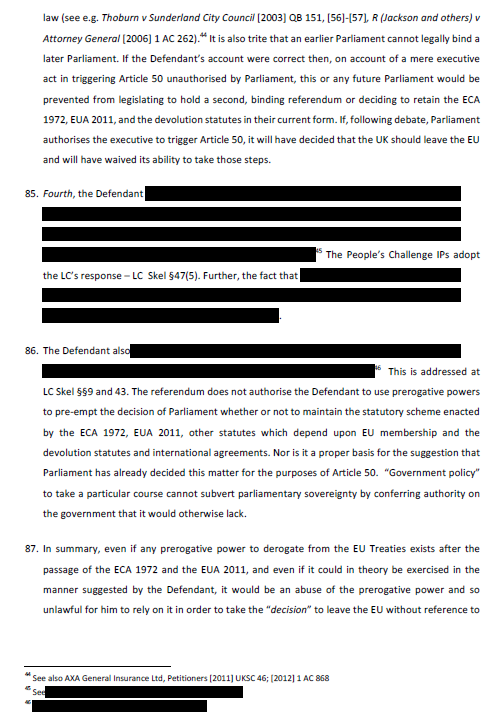 You will note that, in consequence of an order made by the High Court, certain sections of this Skeleton have been blacked out (or 'redacted' if you want to Talk Like a Lawyer). I am publishing, separately, a copy of the Interested Parties' application to overturn that order of the High Court.