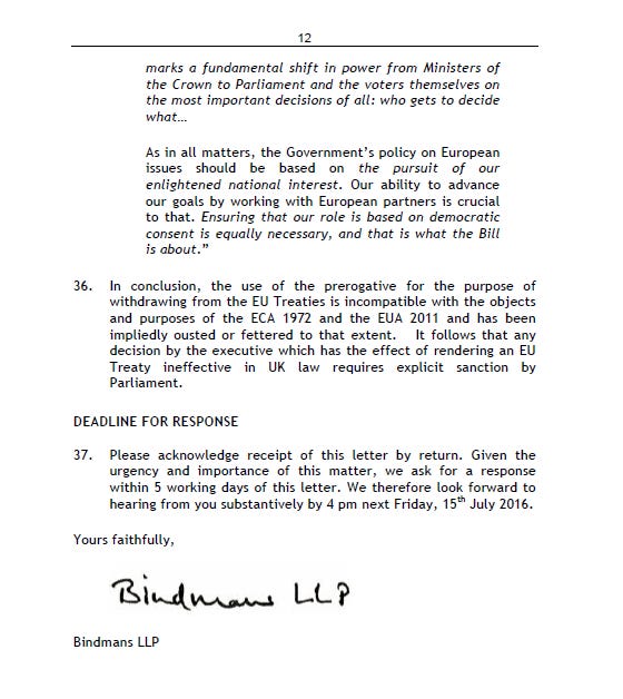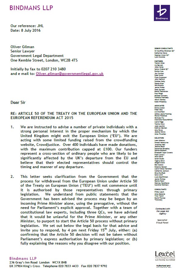 I promised to name the legal team you had funded and reproduce a copy of our letter to the Government.