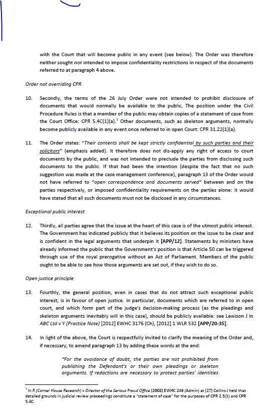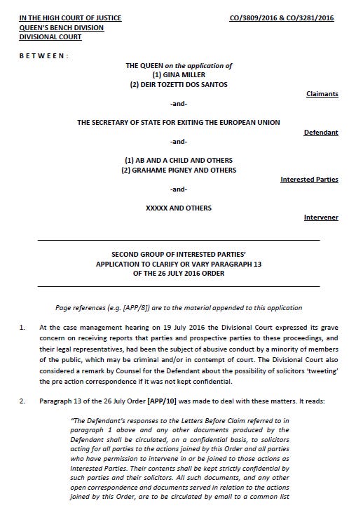 Back in late July, I tweeted this Order of the High Court in the legal challenge to the Government's position that no Act of Parliament is needed to trigger Article 50: