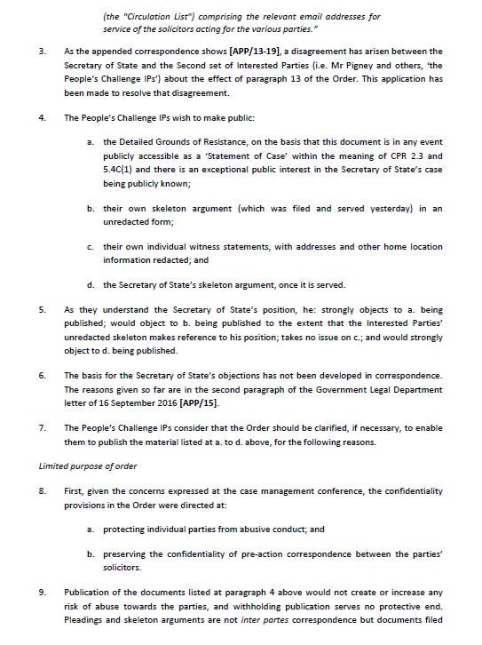 Today, John Halford at Bindmans LLP has applied to the High Court to amend the effects of that Order. I have reproduced, following, that application.