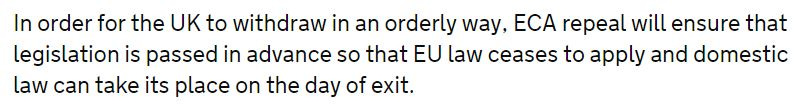 If a withdrawal agreement is struck, it will, as all sides agree, be struck within 18 months of the notification. That leaves plenty of time for the Prime Minister to seek Parliament's permission to repeal the ECA mindful of that agreement.