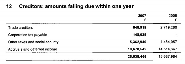 Although Google UK Limited has not provided a cashflow statement it does have a statement of current liabilities which provides: