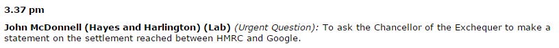 And there were also wider public concerns around whether the deal struck with Google represented a good one for the UK taxpayer. John McDonnell, Shadow Chancellor, was given permission to ask an urgent question in the Commons: