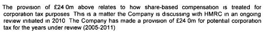 That provision first appeared in Google UK Limited's accounts to 31.12.12 as £24m: