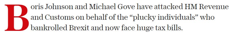 And today it reports Boris Johnson and Michael Gove as attacking HMRC for enforcing that rule.