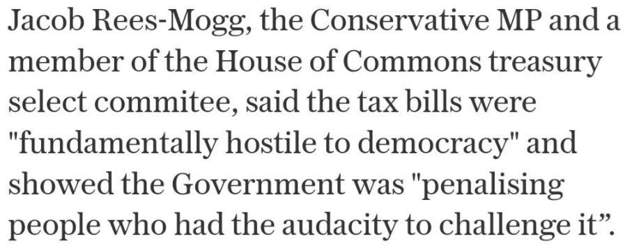 Nevertheless, Rees-Mogg, Johnson and Gove are suggesting that the law should be disapplied to give these immensely wealthy men huge bungs; bungs against the will of Parliament; bungs that are unlawful; bungs that would increase the deficit; bungs that would increase the amounts teachers and nurses and bus-drivers will have to pay in tax.