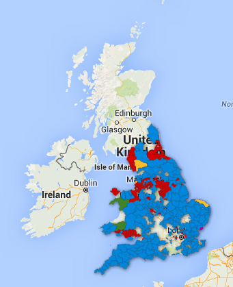 This is the Leave vote for England and Wales (by constituency and political party)