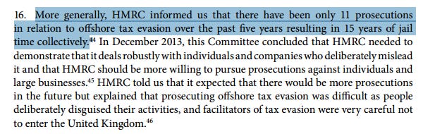HMRC’s investigations do not lead to sufficient prosecutions to provide an effective deterrent, particularly for wealthy individuals who hide their assets offshore.