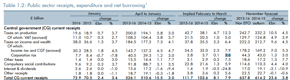 VAT receipts in February and March would have to grow 5% from 2014-15 compared with November's full year forecast of 3.9% and growth so far this year of 3.7%.