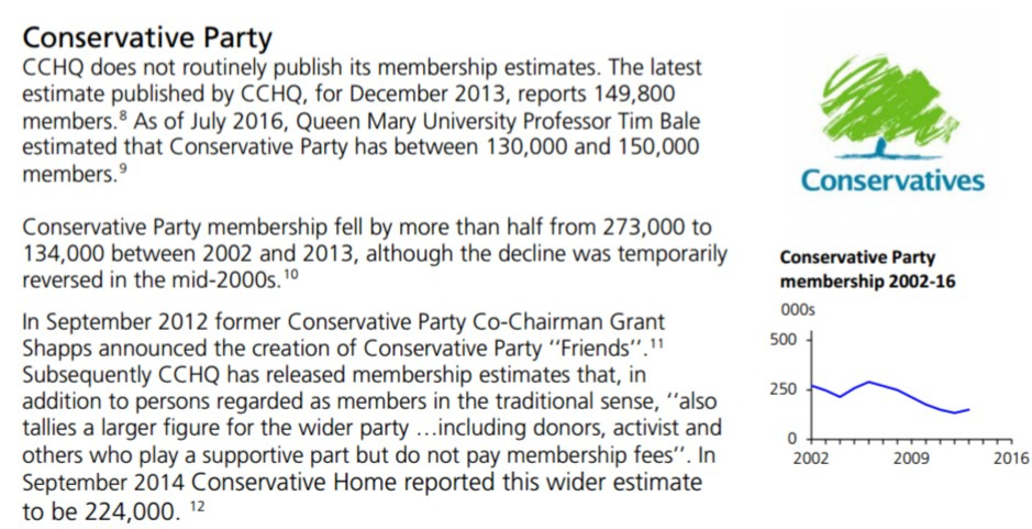 Most importantly of all, you will have a high degree of influence. The Conservative Party membership is low. This recent estimate from Professor Tim Bale (published by the House of Commons Library) gives a figure of between 130,000 and 150,000.