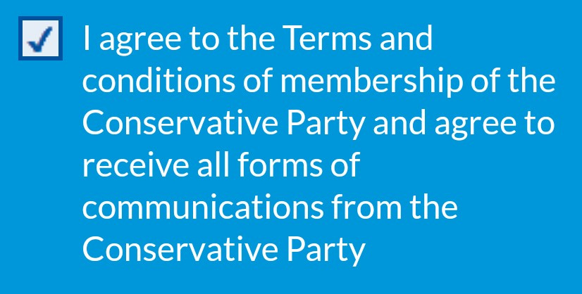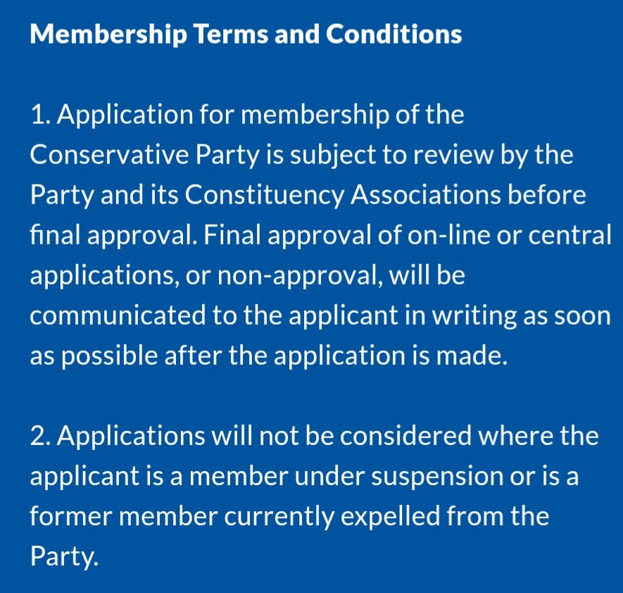 And you have to agree to the Terms and Conditions of membership of the Conservative Party.