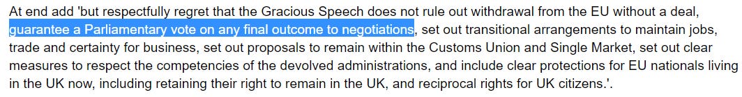 I can confirm today that the government will put the final deal that is agreed between the UK and the EU to a vote in both Houses of Parliament, before it comes into force.