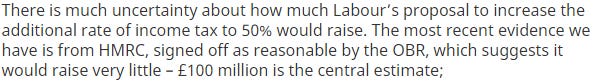 The IFS' pre-election estimate of the exchequer effects of raising the top rate from 45% to 50% doesn't quite fall into this trap: