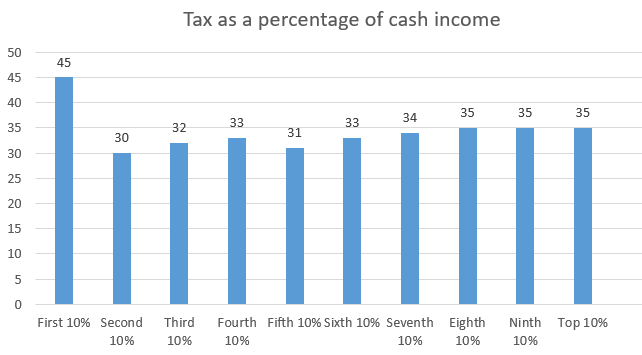 On Sunday I wrote about how the tax system, examined as a whole, isn't nearly as progressive as George Osborne suggests. It's regressive, in fact.