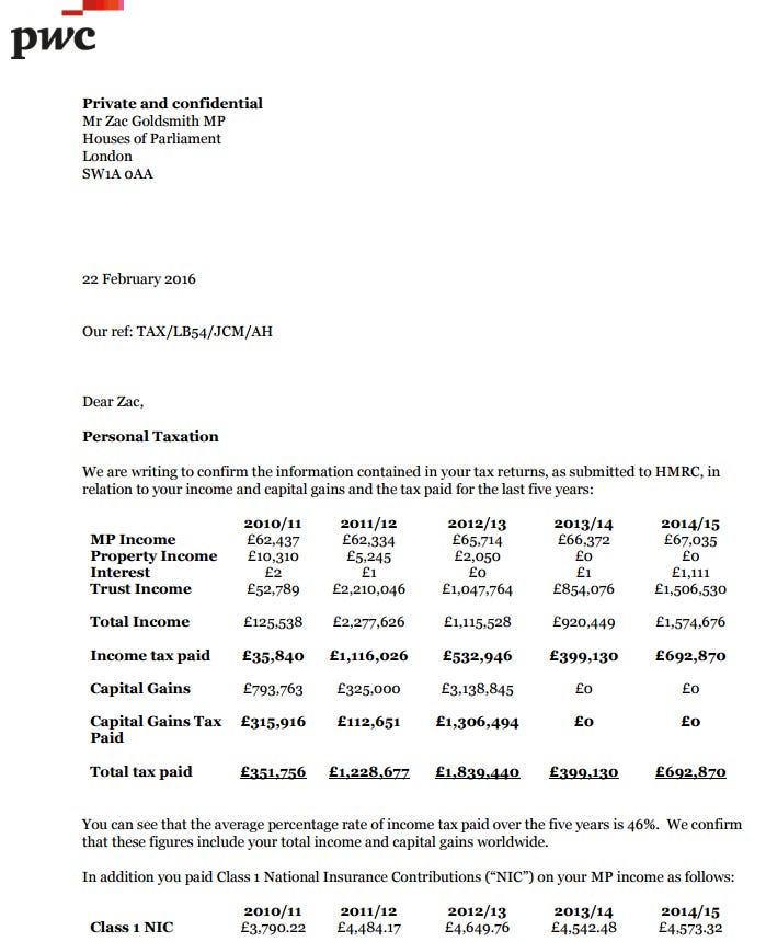Zac Goldsmith has today published the details of his tax payments, delivering on the commitment he made to do so last week. A letter from Zac’s accountant, prepared at his request, confirms the details of his worldwide income, capital gains, and tax payments in each of the years since he first held public office. Zac Goldsmith said: ‘I have today published my tax return details, prepared and verified by PwC, who have represented me all my adult life. ‘I gave a commitment to do so and today I deliver on that promise. I look forward to all mayoral candidates doing the same so London voters can judge us equally. ‘As was well known to voters in my two elections as an MP, I became ‘non-dom’ automatically because of my father’s international status. It was not a choice, and I relinquished it seven years ago. I was born, grew up and have always lived in London - except for two years travelling abroad in my early 20s. Because of this I derived very little, if any, benefit from this status as my income came to the U.K and was therefore taxed here. ‘It is no secret I was dealt a good hand in life, but I have been determined to play it well. I have stood up for my local community in Parliament for six years, delivering on my promises to them - which is why they returned me with one of the biggest increased majorities at the last election. I am proud of my record and I will stand up and deliver for all of greater London, just like I have for Richmond, should I be elected mayor in May.’ ENDS