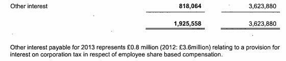 You'll notice that it occupies a separate line in the accounts to the £24,069,879 figure carried over from 2012 and has a separate description. Call this the Second Dispute.