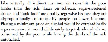And they can be regressive, sin taxes. Can, because assertions that they invariably are (see, for example, from the Adam Smith Institute):