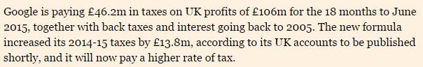 Even with the tax already payable, still significantly short of the £200m that in a logical world Google UK Limited would be paying.