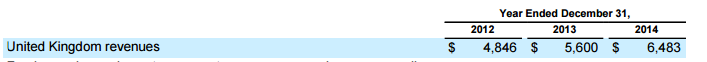 Here's what Google Inc (the Company then at the top of the Google Group) reports to its investors about UK revenues.