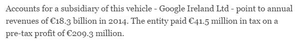 That is what my notional profit calculation starts from. But the process of generating those revenues is constructed to look like this: finding and warming up sales leads and then passing them to Ireland for signing. If the signing took place in the United Kingdom the tax consequences would be different - and less attractive to Google. To avoid that Google introduces some artifice.