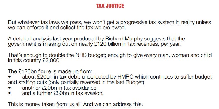 What the Corbyn Manifesto says about the Tax Gap is this: