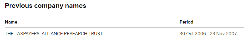 So over those five years PERT made 95 grants (including 18 in 2010) to the Taxpayers' Alliance out of a total of 119 (80%). By value 79% of its grants were to the Taxpayers' Alliance. An average grant of £319,000 per annum. Perhaps this is a surprise. And then again, perhaps not. Companies House reveals PERT originally had a different name:
