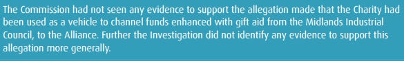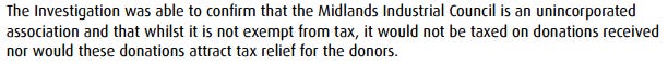 It was also confirmed to the investigation that the Midlands Industrial Council has not made any donations to the Charity...