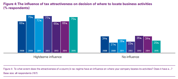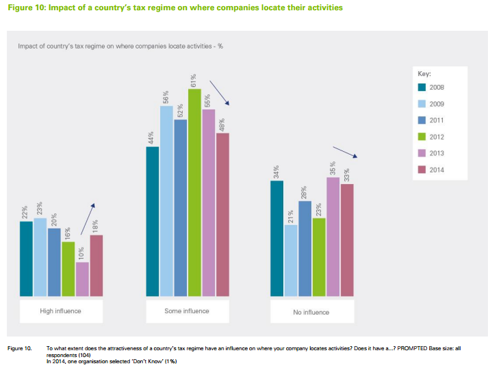 In 2013, the number saying the tax regime has "no influence" on where they located their activities was a staggering 350% of the number saying "high influence".