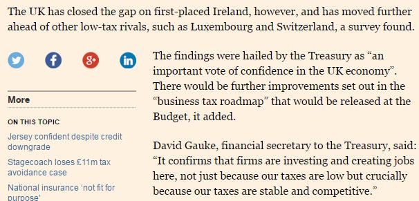 But is that really what the KPMG 'league tables' show? Do we really need "further improvements" (for them, that is. You and I would probably describe it as collecting even less tax from multinationals)?
