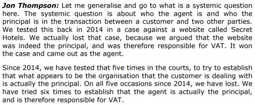 Explaining why HMRC is not pursuing Uber for VAT, here is what Jon Thompson, Chief Executive and Permanent Secretary of HMRC, said to the Public Accounts Committee: