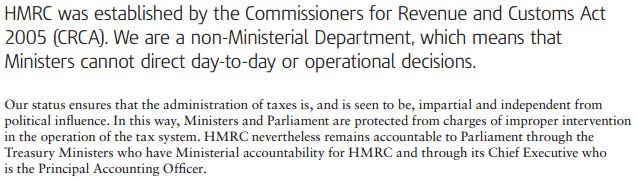 And externally HMRC's actions are scrutinised by the Public Accounts Committee, the Treasury Select Committee, and the National Audit Office.
